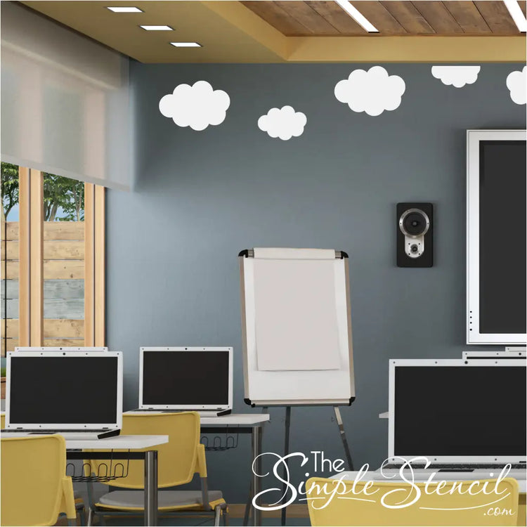 Create a whimsical skyscape indoors with our adorable Puffy Cloud Wall Decal! These little floating clouds are perfect for adding a serene and imaginative touch to your child's room, playroom, or school classroom. Watch as their imagination soars with a dreamy ceiling or wall filled with soft, puffy clouds.
