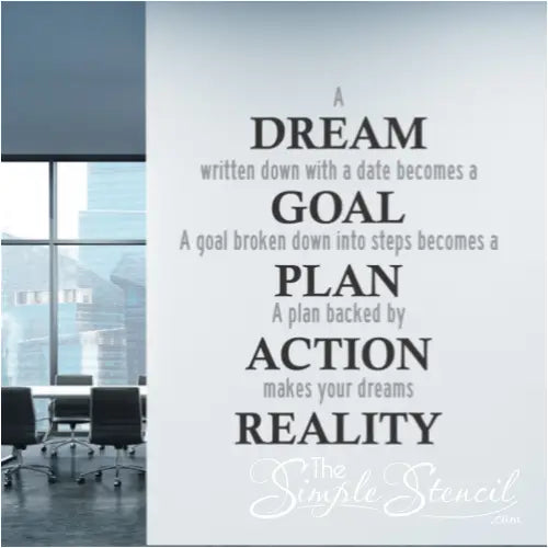 A dream written down with a date becomes a goal, a goal broken down into steps becomes a plan. A plan backed by action makes your dreams reality. A creative display for a high school or office building decor by The Simple Stencil