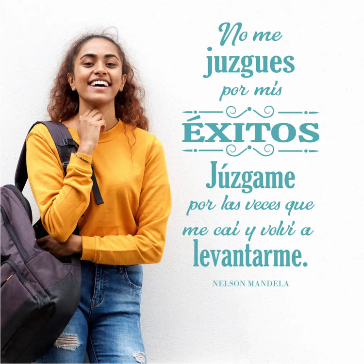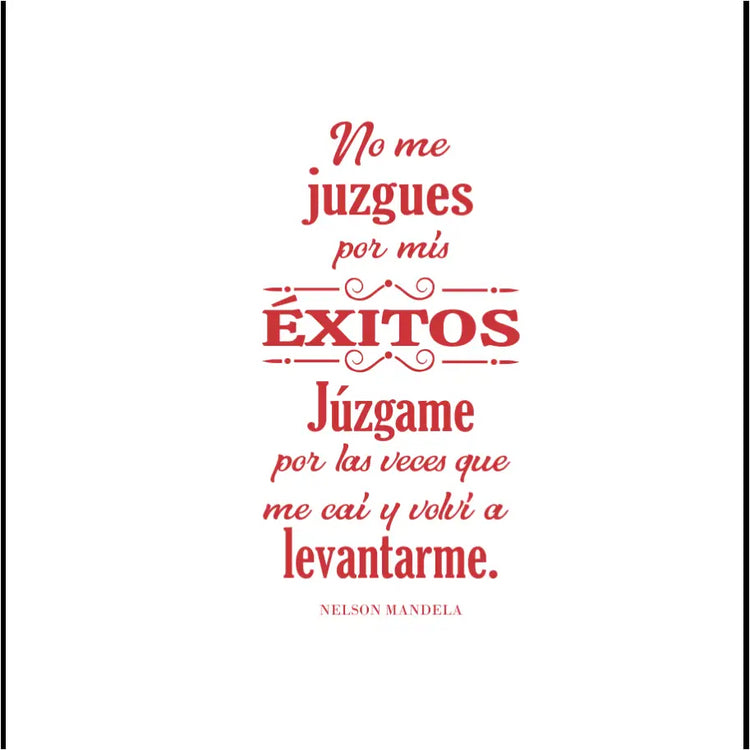 A Spanish version of this remarkable decal to encourage students in the class, personnel in the workplace and relatives facing difficulty. This Nelson Mandela wall decal declares: No me juzgues por mis exitos, juzgame por las veces que me cai y volvi a levantarme. -Nelson Mandela